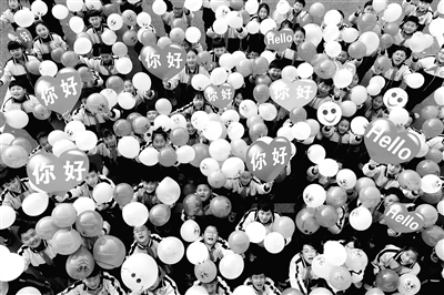 近日,山東省棗莊市光明路街道田莊小學(xué)學(xué)生手舉問(wèn)候語(yǔ)、彩色氣球等表達(dá)祝福。為迎接“世界問(wèn)候日”,該校開(kāi)展多彩主題活動(dòng),學(xué)生們通過(guò)不同的方式傳遞溫情。 吉喆 耿德剛 攝