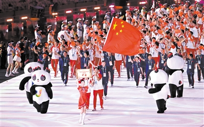 圖⑥ 7月28日,中國大學生體育代表團在開幕式上入場。當晚,第31屆世界大學生夏季運動會開幕式舉行。新華社記者 趙子碩 攝
