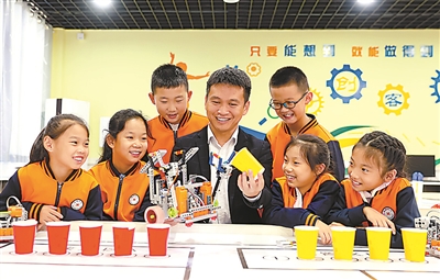 圖⑦ 10月10日,江西省瑞昌市實驗小學學生在創客實驗室學習智能機器人組裝等知識。魏東升 攝