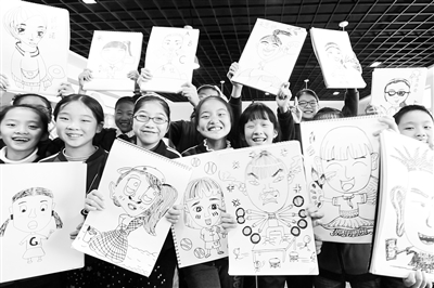 海鹽縣三毛小學(xué)的學(xué)生正在展示她們創(chuàng)作的漫畫。海鹽縣教育局 供圖