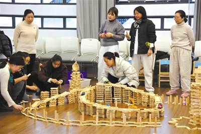 寒假期間,浙江省諸暨市暨南街道中心學校下屬街亭幼兒園和三江幼兒園的教師,聚在一起開展“老師變孩子,巧手來搭建”碳化積木建構活動。活動中,教師以兒童的視角、立場去搭建作品,通過親身體驗,了解建構材料的趣味性和操作性,以便給予孩子更好的指導。陳霞芳 攝