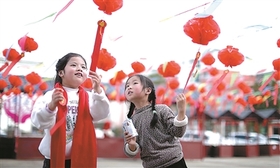 2月19日,小朋友在貴州省黔東南苗族侗族自治州丹寨縣金泉街道移民搬遷社區猜燈謎。元宵節將至,丹寨縣金泉街道移民搬遷社區的搬遷群眾歡聚一堂,包湯圓、猜燈謎,其樂融融,喜迎元宵節的到來。