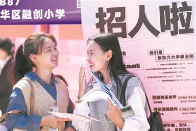 3月23日,求職學(xué)生在招聘會(huì)上交流。當(dāng)日,云南省2024年公費(fèi)師范生招聘會(huì)暨云南省2024屆師范類高校畢業(yè)生雙向選擇洽談會(huì)在位于昆明市的云南師范大學(xué)呈貢主校區(qū)舉行,吸引省內(nèi)外393家用人單位、近2萬(wàn)名畢業(yè)生參加。新華社記者 王靜頤 攝