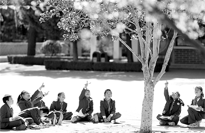 清華附小每學期都要安排校園寫生課,目的就是引導學生觀察校園,熱愛學校,在校園里過有價值的藝術(shù)生活。清華附小校園曲徑通幽,景觀雅致,生態(tài)和諧,人稱清華大學的“后花園”。校園里有植物花卉110多種,四季次第開放,大自然的美浸潤著師生的心靈。游走校園,中外名家雕塑及人文主題景觀共有20余處:“知識之門”“水木之夏”“桐蔭樂園”“山水涂鴉”“華宇棧道”……整個校園環(huán)境曾獲中國建設(shè)工程魯班獎,是名副其實的、凝固而靈動的美育作品。