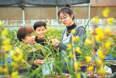 近日,在浙江省湖州市長興縣龍山街道川步村蘭花種植基地大棚內,返鄉創業大學生王琳(右)在指導工人對蘭花的土壤進行采樣。大學畢業后,王琳回到川步村,參與創辦了蘭花種植基地,從事蘭花種植和線上線下銷售,發展蘭花種植產業,助力鄉村振興。