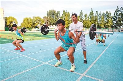 7月22日,湖北省襄陽市樊城區竹條實驗中學教師正在指導學生練習舉重。為了豐富農村學生暑期生活,樊城區各鄉鎮學校為學生們開設了豐富多彩的暑期社團,讓孩子們度過一個快樂充實的假期。聶志鵬 攝