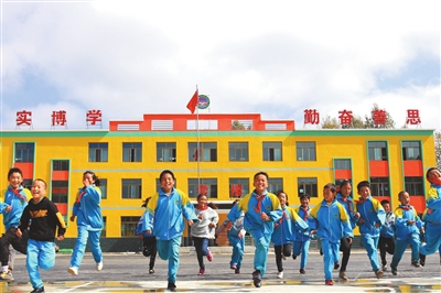 ②甘肅省臨夏州康樂縣三條溝小學師生搬進新校園。