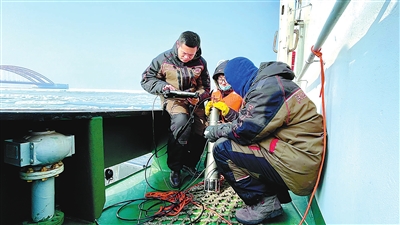 ①哈爾濱工程大學水聲通信與定位技術創新團隊在冰上做實驗。