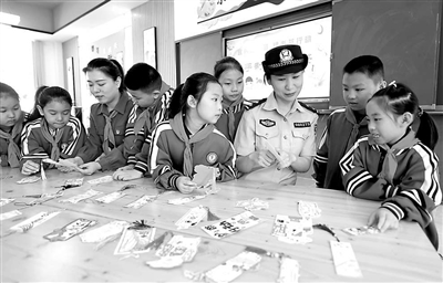 9月24日,在安徽省安慶市宜秀區月形小學,社區民警、美術教師和學生們一起制作綠書簽,并通過觀看視頻和互動,讓學生們了解制作綠書簽的意義,引導未成年人綠色閱讀,營造護航未成年人健康成長的濃厚氛圍。