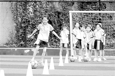 福建省福州市鼓樓第五中心小學學生進行足球控球訓練。 通訊員 謝貴明 攝