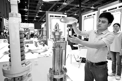 在高校展區,華東理工大學工作人員介紹高安全性承壓設備超壓泄放裝置。劉曉晶 攝
