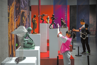 10月6日,一名小朋友在呼和浩特雕塑藝術館參觀。新華社記者 連振 攝
