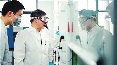 北京大學(xué)化學(xué)與分子工程學(xué)院教授裴堅在指導(dǎo)學(xué)生。 學(xué)校供圖