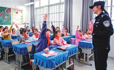 12月3日,在安徽省蕪湖市繁昌區孫村鎮中心小學,民警為小學生講解憲法知識。今年12月4日是第十一個國家憲法日,各地開展形式多樣的活動普及憲法知識,宣傳法治觀念。2024年“憲法宣傳周”活動主題為“大力弘揚憲法精神,推動進一步全面深化改革”,時間為12月1日至7日。 肖本祥 攝(新華社發)