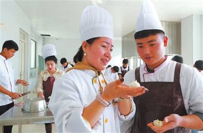 “張家口的老師來了,讓我們學到了真本事。”“我哥哥就是在這里學了烹飪,現在到大酒店當了廚師?!薄攺埣铱谑新殬I教育調研團團長、張家口市教育局副局長戴文忠與和碩縣高級中學職高班學生交流時,孩子們一個個爭搶著說。