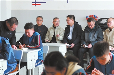 張家口市職業教育調研團成員深入和碩縣高級中學隨堂聽課,與評課組專家交流評課意見。