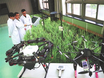 南京農業大學智慧農業創新團隊應用自主開發的作物生長監測診斷儀監測作物生長狀況。學校供圖