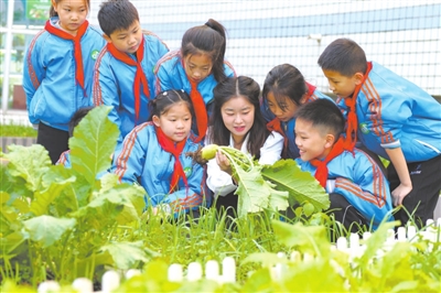 近年來,襄陽市樊城區(qū)鼓勵各學校結合校內資源開辟校園勞動實踐場所,培養(yǎng)學生勤儉節(jié)約、熱愛勞動的良好品質。在“校園農場”,大慶路小學學生通過體驗除草、澆水、采摘等,學習相關知識和技能,感受勞動的意義。