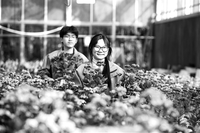 1月6日,在浙江省湖州市現代農業技術學校花卉種植基地,學生在管護花卉。春節臨近,該校的花卉種植基地姹紫嫣紅、花香四溢,學生積極參與花卉管護過程。