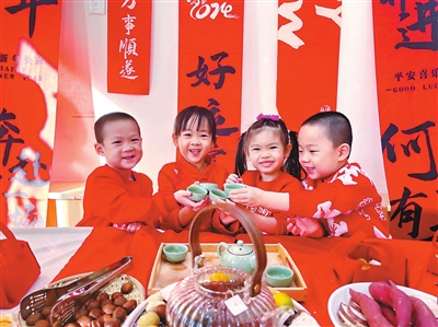 為傳承春節這一傳統節日的豐富內涵,增強幼兒對傳統文化的認知和體驗,吉林省長春市南關區組織全區幼兒園開展“非遺培養了不起的中國娃”活動,倡導幼兒園開展“紅紅火火過大年”活動。圖為幼兒在民俗活動中感受濃濃的中國年氛圍。本報記者 李瑩 通訊員 王藝霏 攝