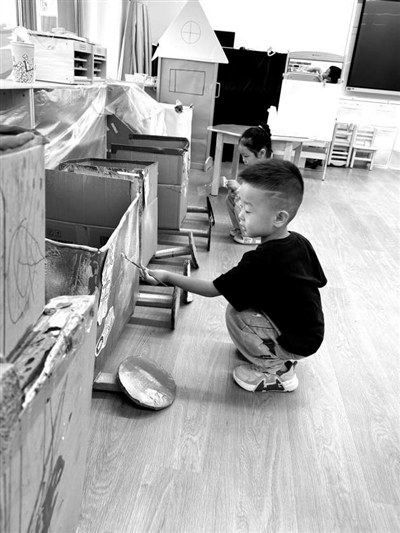 智慧緣起:對(duì)于小班幼兒而言,了解、適應(yīng)幼兒園的一日生活是他們?nèi)谌爰w生活的重要一步。如何以一種既有趣又有效的方式幫助幼兒熟悉這一流程、愉快度過(guò)在園生活,成為小班教師不斷探索的問(wèn)題。在教師和幼兒一起談?wù)撚變簣@每天會(huì)進(jìn)行哪些活動(dòng)時(shí),幼兒列舉出了進(jìn)餐、午睡、玩玩具等,但也發(fā)出疑問(wèn):“老師,是睡醒就要回家了嗎?”為了幫助小班幼兒明確在園都要進(jìn)行哪些活動(dòng),了解一日生活流程,形成安全感和歸屬感,教師和幼兒利用舊紙箱這一常見材料,打造了一列獨(dú)一無(wú)二的“小火車”。