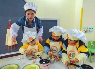②六盤水市水城區第二幼兒園小朋友們在學做美食。