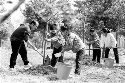 植樹(shù)節(jié)到來(lái)之際,3月11日,在浙江省湖州市長(zhǎng)興縣夾浦鎮(zhèn)濱湖村,該鎮(zhèn)中心小學(xué)師生和志愿者一起植樹(shù)添綠。 譚云俸 攝