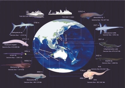 團隊經過多次深海巡航,采集了來自深海不同區域的11種魚類樣本,通過對這些樣本的基因組數據進行深入分析,構建了深海魚類的“生命進化樹”,揭示了脊椎動物征服深淵的歷程。結果顯示,少數類群的深海魚類在1億年前便開始適應深海環境,而大多數現存的深海魚類則是在6500萬年前的大滅絕事件后才進入深海區域。