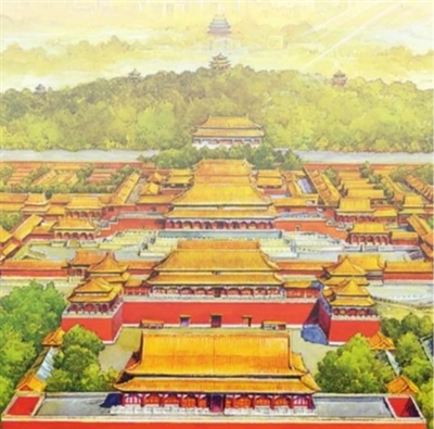 圖片選自北京少年兒童出版社《北京城的脊梁:中軸線的故事》 于春華繪