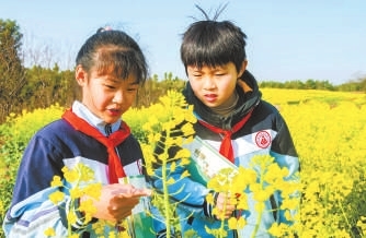 安徽師范大學(xué)附屬含山實驗學(xué)校的學(xué)生在觀察油菜花。 歐宗濤 許麗 攝