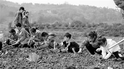 ①重慶市江津區四牌坊小學校學生在勞動基地開展實踐活動。
