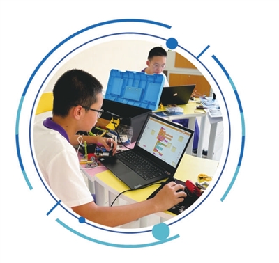 中央民族大學附屬中學紅河州實驗學校八年級學生在編寫生態保護機器人代碼。學校供圖