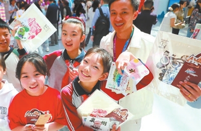 4月26日,湖南省長沙市岳麓區博才梅溪湖小學蔣傳雨老師帶領學生到第八屆中小學生藝術展演活動全國匯演實踐活動成果(工作坊)展示現場參觀,孩子們收獲滿滿。 本報記者 張學軍 攝