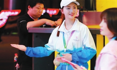 4月25日晚,在第八屆中小學生藝術展演活動全國匯演開幕式上,學生志愿者引導觀眾有序入場。 本報記者 張學軍 攝