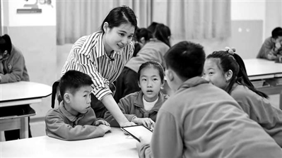 浙江省杭州市未來科技城海曙小學的教師在輔導學生。學校供圖
