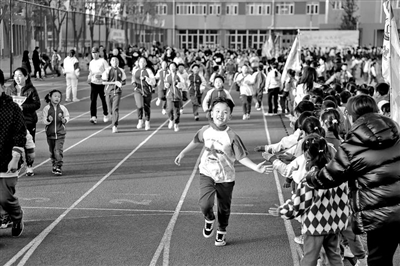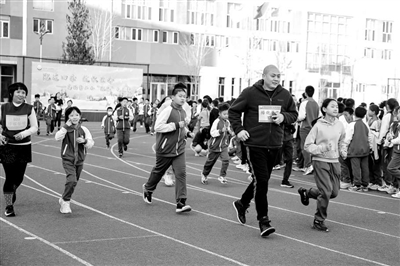 北京市順義區高麗營第二小學舉行校園親子跑活動。 梁星 攝