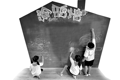在長沙市岳麓區實驗小學“心語花溪”心理成長中心的情緒宣泄室,學生通過涂鴉放松心情。