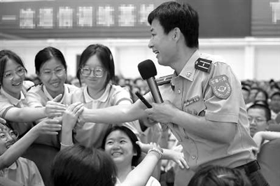 保定中學(xué)邀請(qǐng)雷鋒班第22任班長(zhǎng)吳錫有來(lái)校開(kāi)展大思政教育。 王祎銘 攝