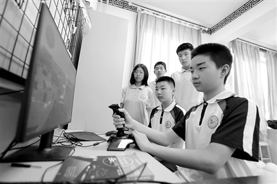 5月30日,內(nèi)丘縣第二中學(xué)學(xué)生在進(jìn)行模擬飛行操控。