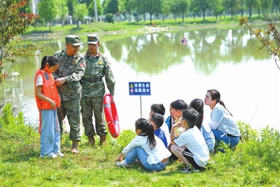 近日,在安徽省合肥市廬陽區(qū)三十崗鄉(xiāng)柴沖村,民兵在向?qū)W生示范救生衣的穿戴。安徽省合肥市廬陽區(qū)三十崗鄉(xiāng)武裝部聯(lián)合古城小學(xué)通過普及防溺水常識(shí)、演示緊急互救方法、體驗(yàn)救生器材操作等,強(qiáng)化防溺水安全教育。