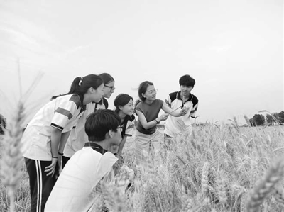 近日,新樂市第四中學美術教師在北青同村麥田指導學生認識麥穗結構。 王瑞夫 攝