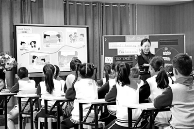 山東省煙臺市芝罘區魯峰小學的教師在區英語教研活動中執教繪本閱讀示范課。學校供圖
