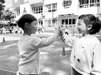 第二步:構建同伴能量圈。通過AI的“社交傾向分析”,我為寧寧匹配了運動能力相近的小雨組成“尋寶小隊”。首次合作,寧寧攥著地圖,看起來有些緊張,小雨主動遞來的卡通貼紙成為破冰的鑰匙。從并排攀爬時輕聲計數(shù),到共同商議“如何跳過第三塊石頭”,兩個女孩在合作中逐漸形成了默契。