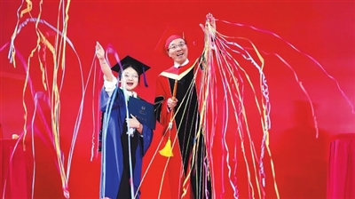 中國(guó)農(nóng)業(yè)大學(xué)畢業(yè)典禮上,校長(zhǎng)孫其信與畢業(yè)生互動(dòng)合影。學(xué)校供圖
