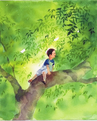 一張白色的大網如被子般輕柔地鋪在核桃樹下,爸爸告訴我,那是山民們為了防止打核桃時核桃亂蹦而想出的妙計。我抬頭仰望,樹上已然不見核桃的蹤影,只留下一片片細細長長、邊緣呈鋸齒狀的核桃葉在微風中輕輕搖曳。