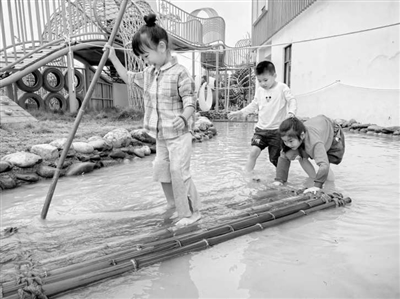這些“探險隊”成員正是海棠幼兒園的教師。“探險”始于4年前,當時,盡管幼兒園占地20畝,并以“公園式幼兒園”著稱,但孩子們常常在空曠的草坪上無所事事地游蕩,嘴里不時嘟囔著:“不好玩!”為此,我們進行了改革探索。