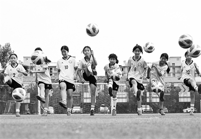 近日,江蘇省徐州市睢寧縣凌城小學女子足球隊的隊員們在操場上進行帶球繞盤、射門、模擬比賽等訓練。徐州市睢寧縣凌城小學女子足球隊成立于2015年,目前有40多名10歲左右的隊員。她們在體育教師的帶領下“夏練三伏,冬練三九”,在綠茵場上刻苦訓練,技能水平和比賽能力不斷提高,多次在省市縣比賽中獲獎。她們在足球運動中健康快樂成長,追尋屬于自己的足球夢想。 洪星 攝