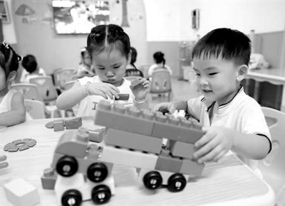 小朋友在拼積木。
