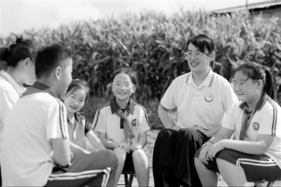 田間“心靈加油站”師生互動現場。學校供圖