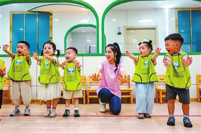 圖③ 近日,在安徽省蕪湖市繁昌區(qū)繁陽鎮(zhèn)新愛嬰托育服務(wù)中心,小朋友在教師的照護(hù)下玩游戲。 肖本祥 攝